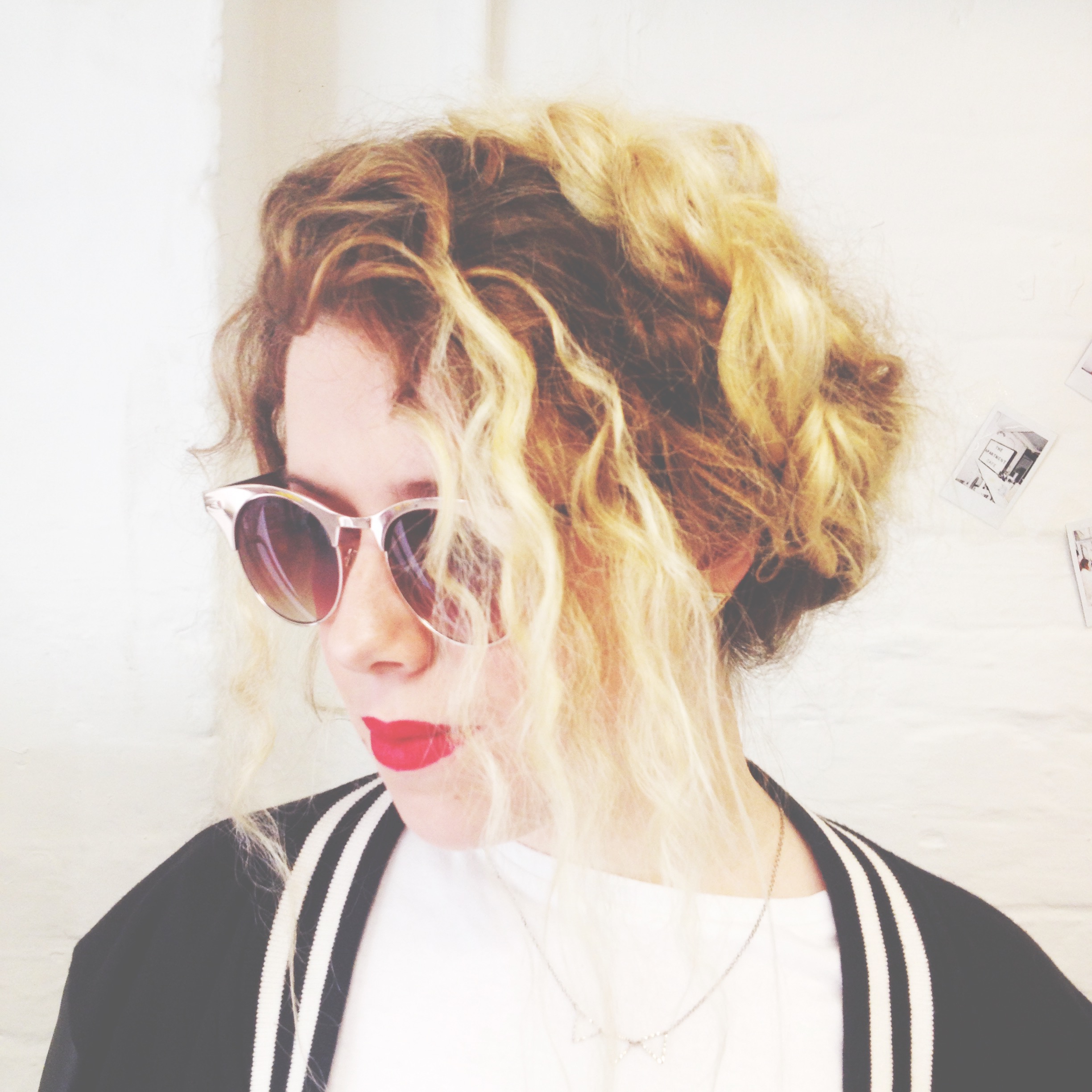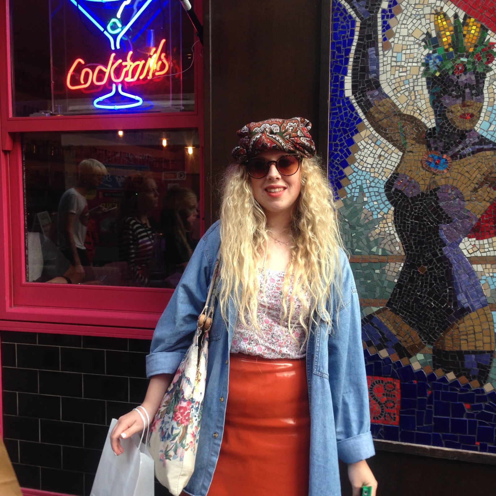 Scarf (head thing), Vintage denim shirt, Sun Glasses – charity shop