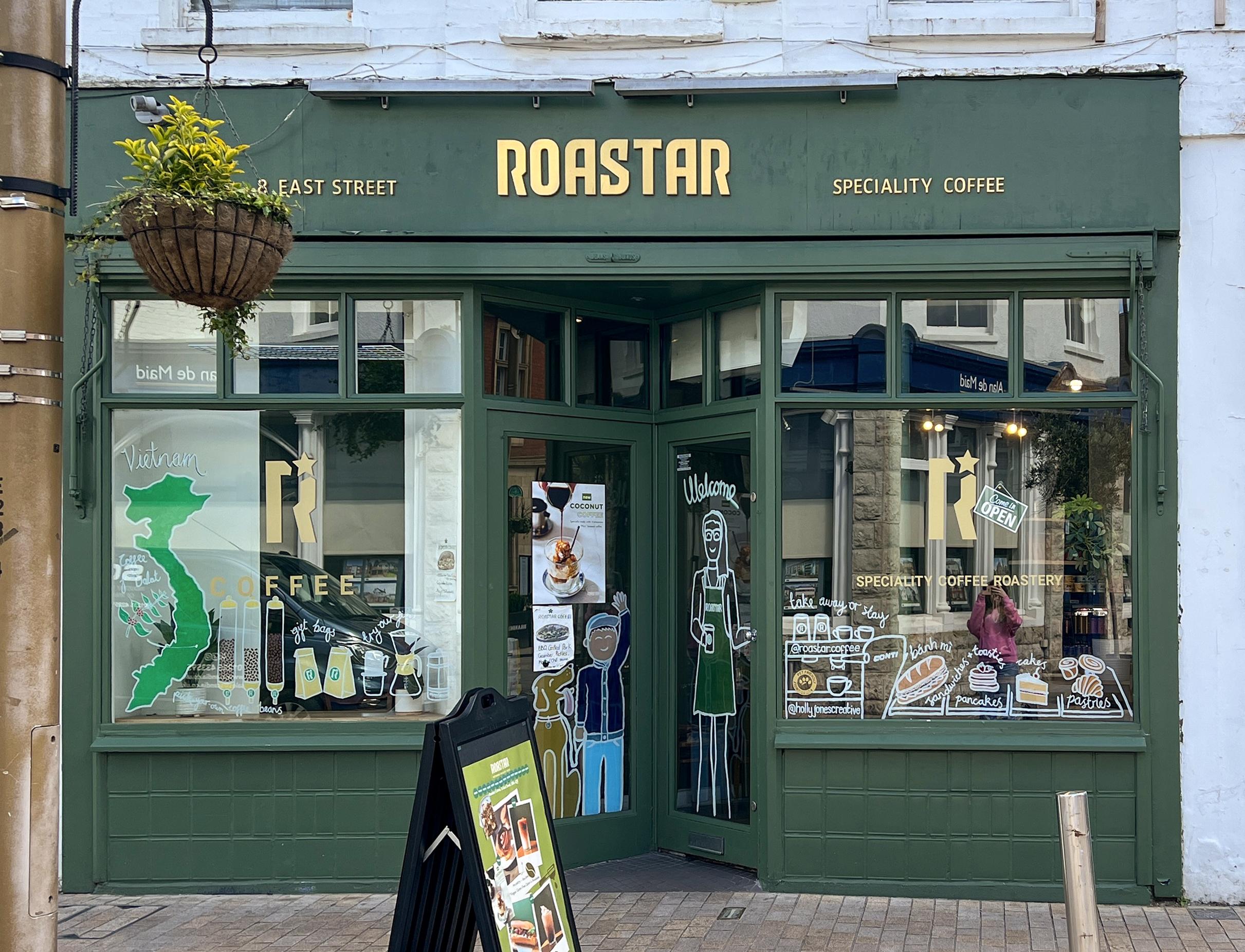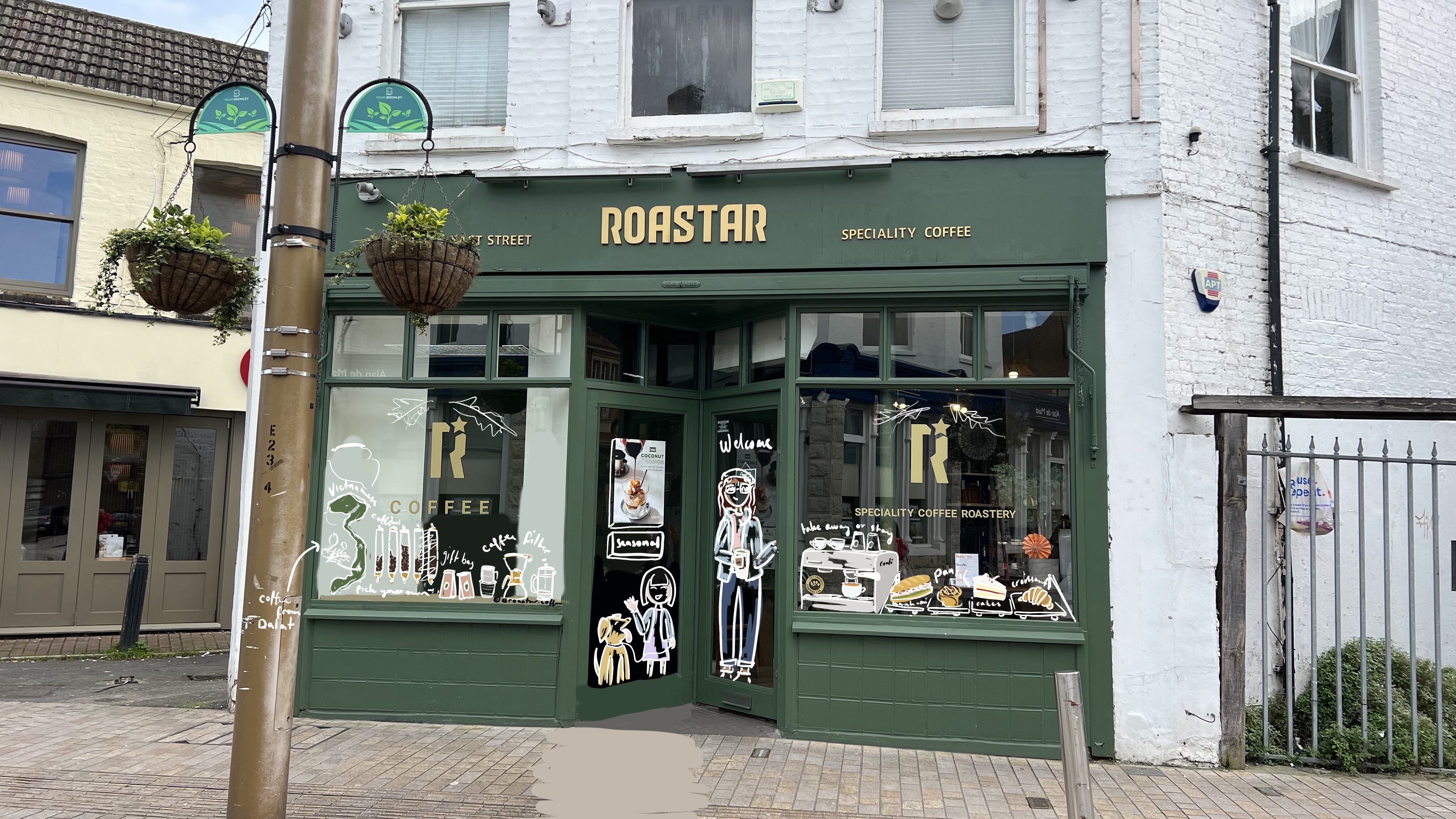 - Roastar offers bánh mì, a Vietnamese baguette, which they wanted to show clearly illustrated in the window as not everyone knows what bánh mì is, and some customers aren’t that ‘adventurous’ with trying new foods. We hope an illustration of the delicious baguettes will tempt them to find a new dish they can enjoy!