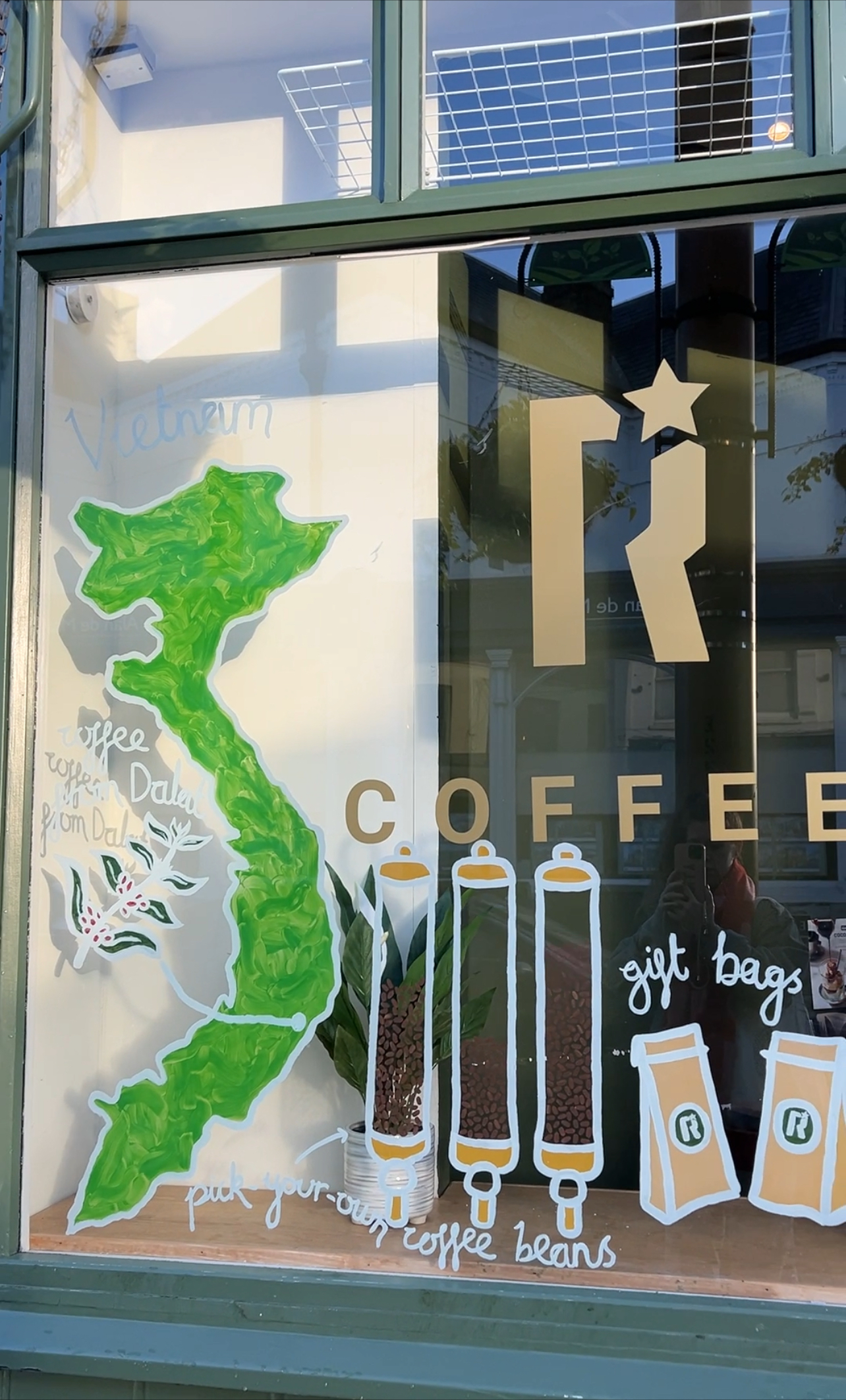 Despite the HUGE setback, I’m so proud of how the window turned out. ❤️ You can now see clearly all Roastar has to offer. We split the full illustration into 3 sections to cover the windows left to right: Coffee, Community, Café.