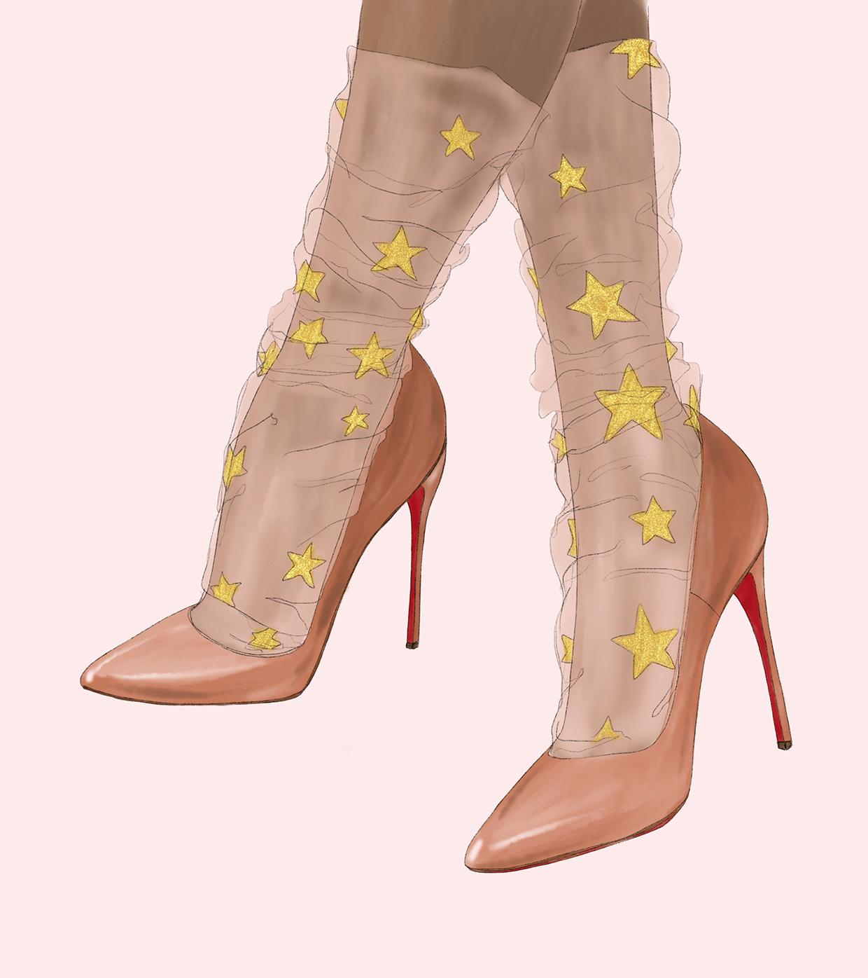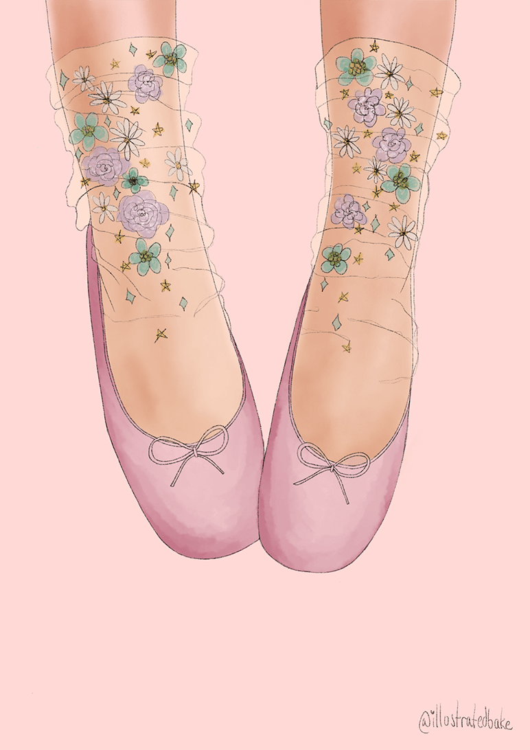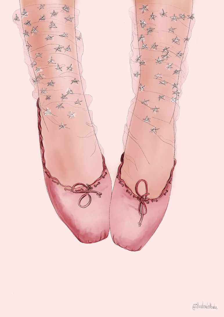 I really love these sheer sparkly socks, so I decided to create some digital illustrations of them. I created 3 different looks for a mini series to sell as prints.