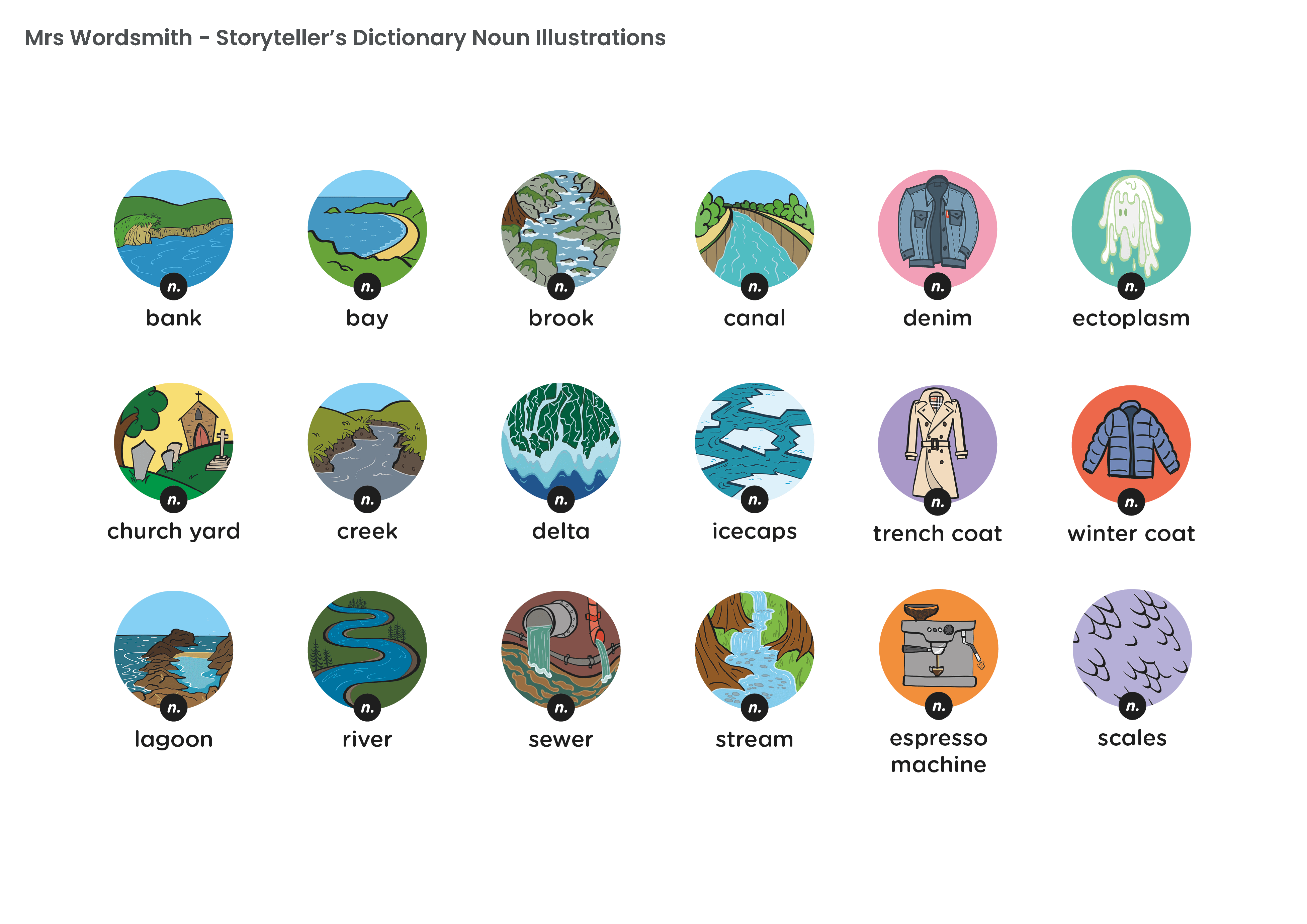 - Working with Writing, Curriculum and Design teams, we concepted illustrations for words and nouns, carefully selected based on data from Cambridge studies on the best 10000 words to learn to excel in school.