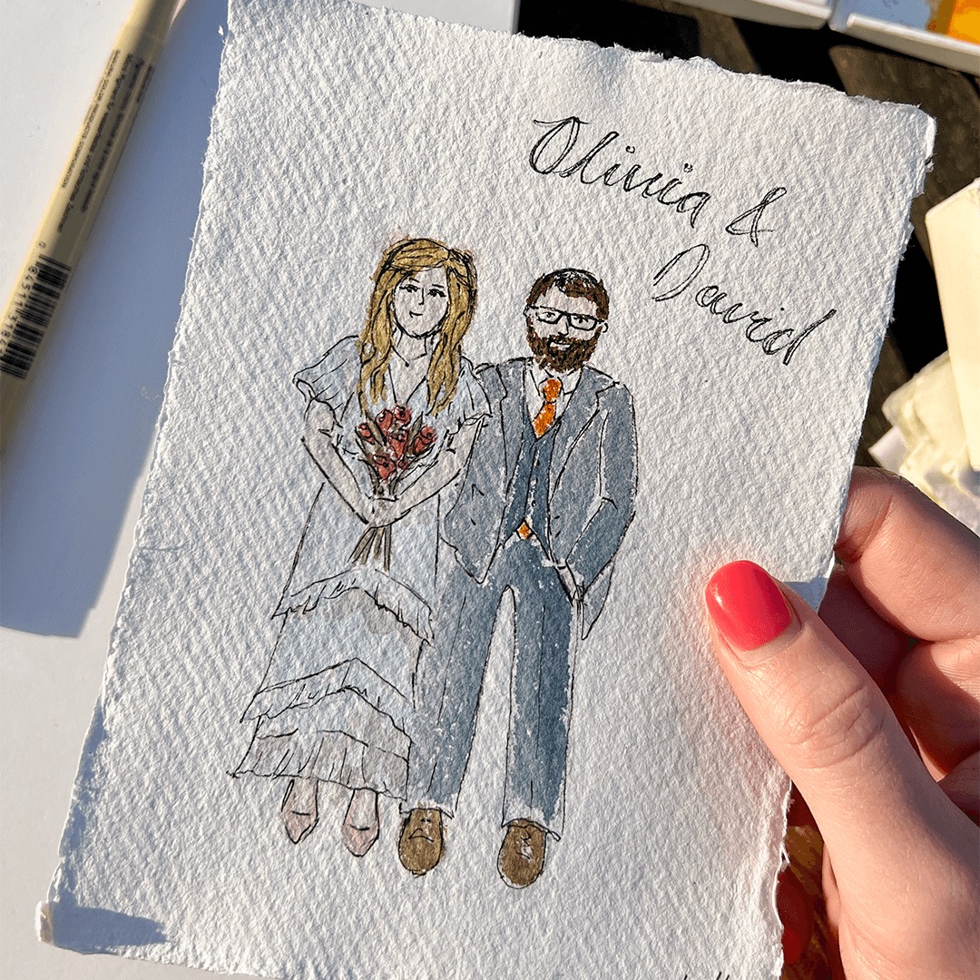 For any guests I haven’t had a chance to sketch, I’ll finish their portraits after the wedding and post them to you within two weeks. This means every guest who wants one will receive a personalised keepsake to remember your special day.